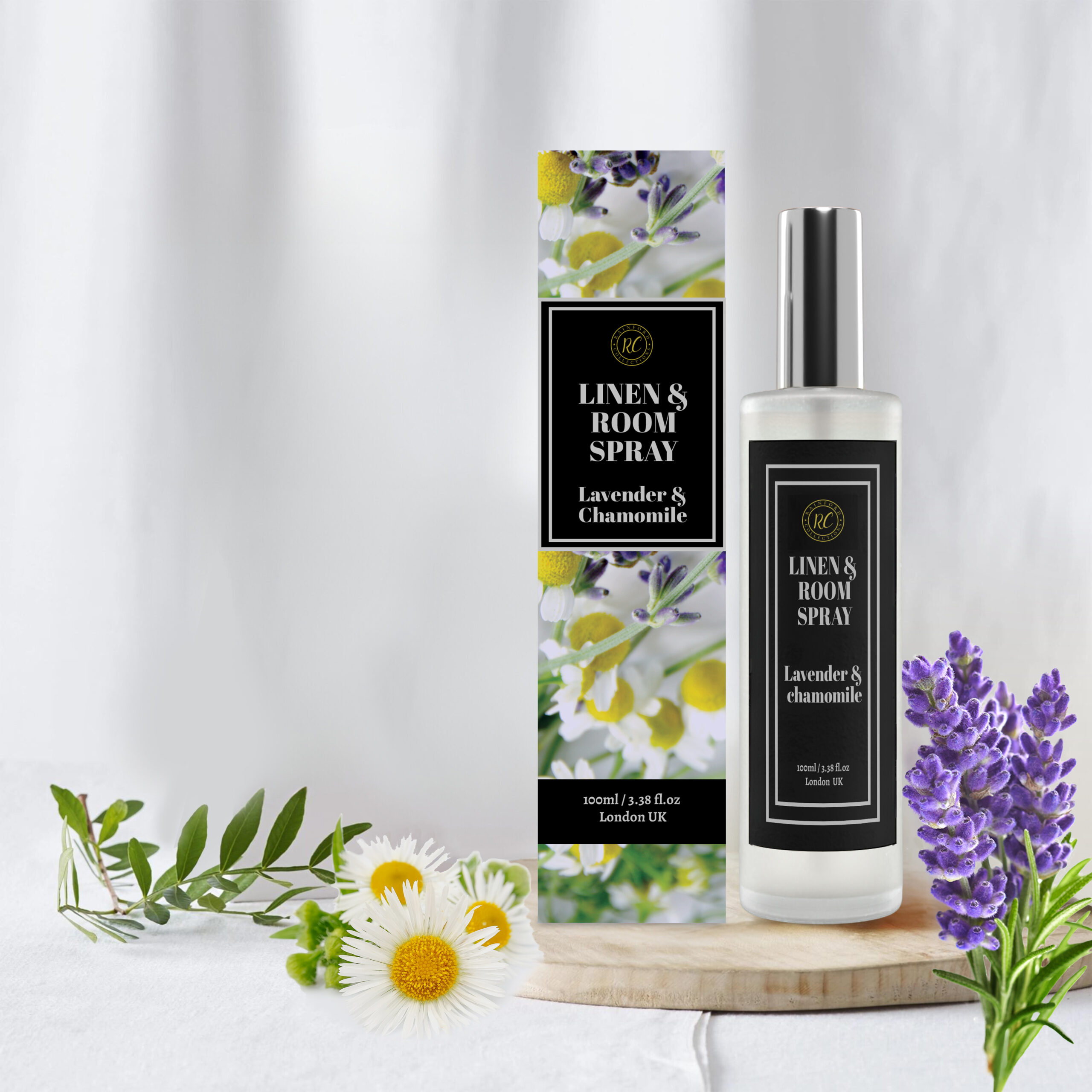 Unwind and de-stress and with our alluring lavender and chamomile room spray. Â its unique scent is sweet and refreshing, promoting stillness and inner peace and has a gentle, relaxing effect on the body. Simply spritz into the air and whisk yourself to a place of serenity and utmost relaxation.